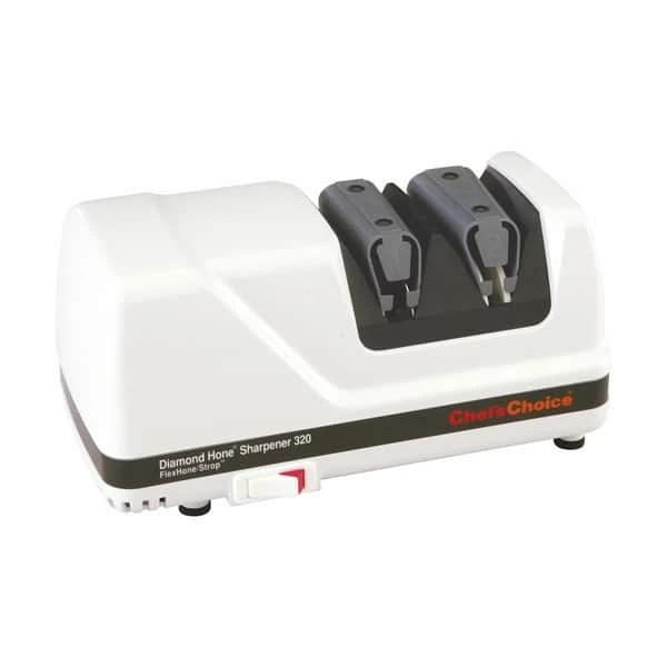 Chef’s Choice elektriske knivsliber model 320, er skabt til vestlige knive, hvor det første sæt ridser fungerer som en grovslibning af kniven og det næste sæt fungerer som polering eller slibning af takkede knive.