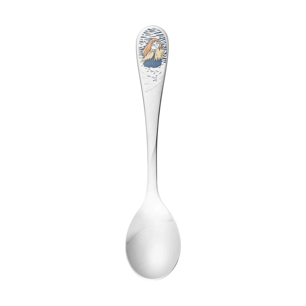 Her er kaffeskeen Snestorm-serien fra Arabia dekoreret med Salome og hendes oplevelser i vinterens stride vejr.