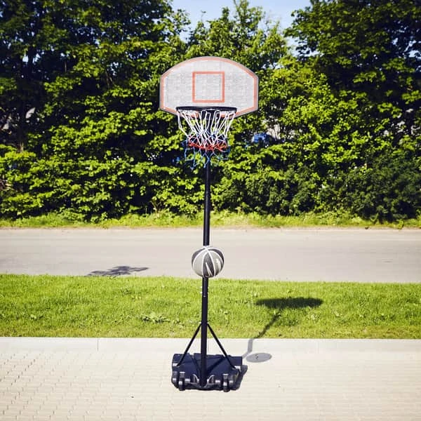 Med NORDIC Games’ basketball stander Basic kan du spille basketball hvor som helst. Den er let at flytte rundt på takket være de indbyggede hjul i basen, som kan fyldes op med enten sand eller vand for ekstra stabilitet. Standeren er justerbar i højden fra 179 til 213 cm og kan derfor tilpasses både børn og voksne.