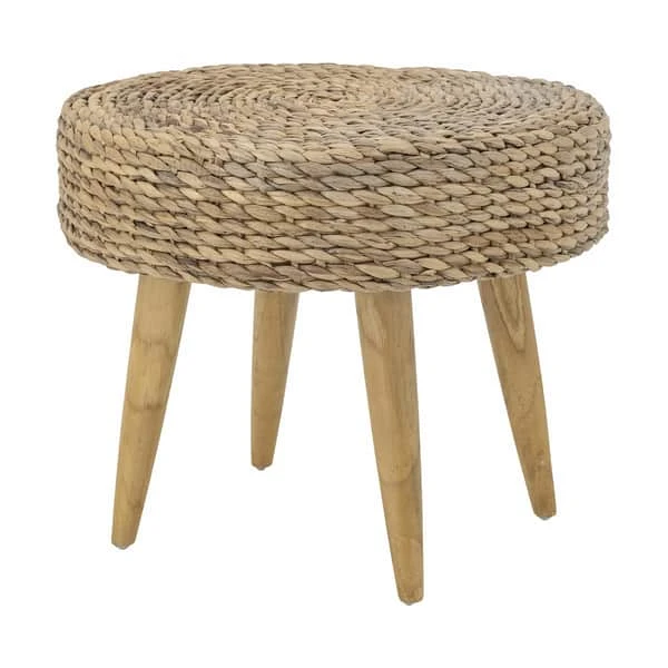 Denne taburet fra Bloomingville har et fint og specielt design. Skamlen er lavet af teaktræ med et håndflettet vandhyacintsæde. Skamlen er perfekt som et ekstra sæde, som fodstøtte eller til at bruge som en piedestal med en stor bakke eller plante ovenpå.
