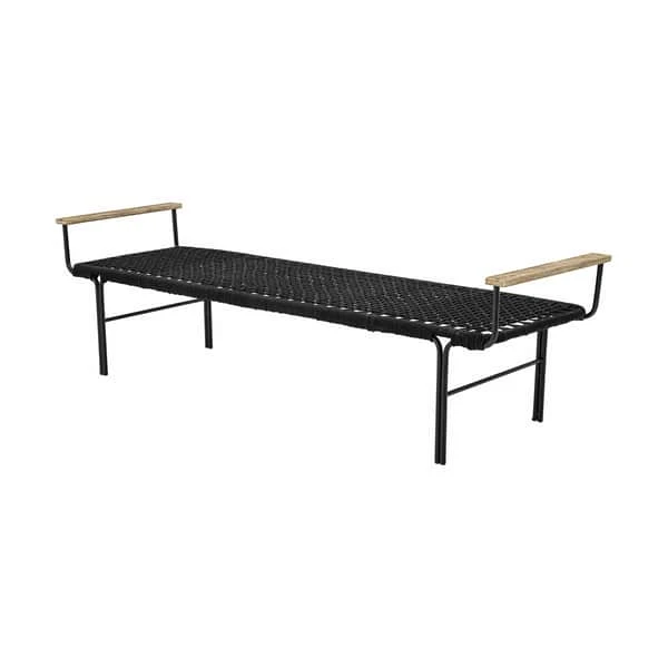 Rammen er lavet af pulverlakeret metal, og sædet er lavet af polyesterreb i sort farve. Håndtagene i siderne er lavet af akacietræ.