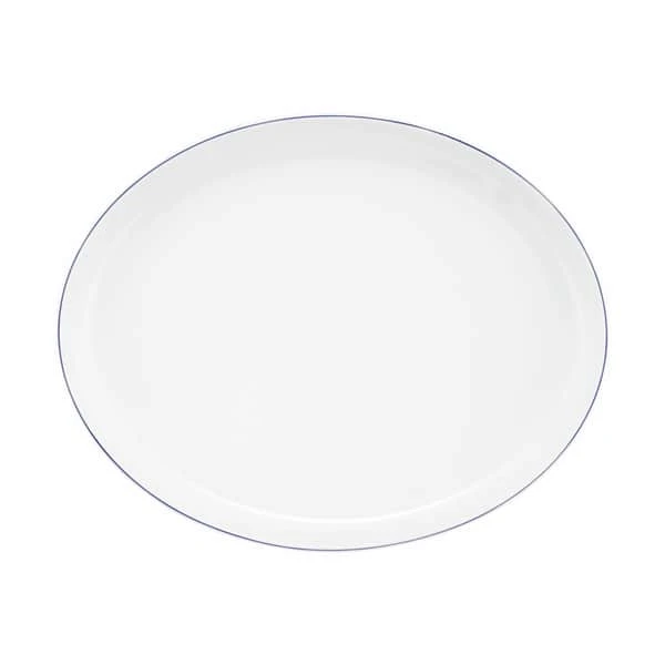 Gør hverdagen nemmere og smukkere med stellet Blå fra Bodum. Det ovale fad er i hvidt porcelæn med den karakteristikske blå streg og måler 33 x 26 cm.