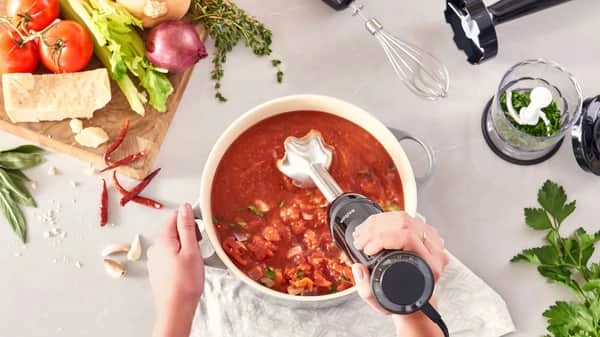 Du kan blende alt fra smoothies til supper med denne effektive Multiquick 5 hjælper. Desuden er stavblenderen udstyret med 21 hastigheder og en kraftfuld motor på 1000 watt, som gør hvilken som helst blendeopgave til en leg.