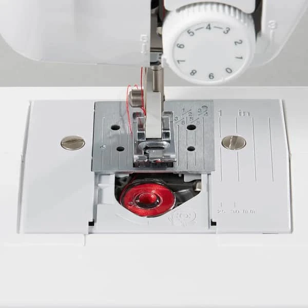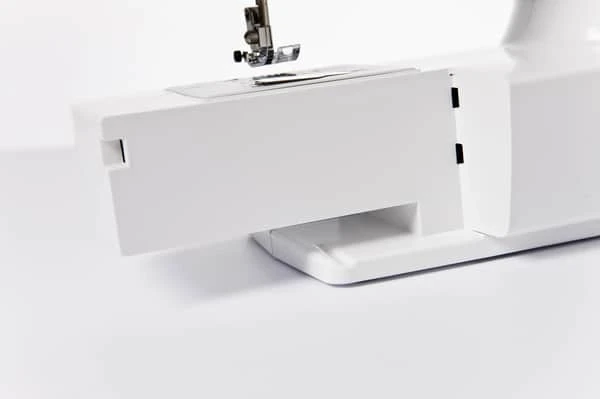 Du kan også sy knaphuller, da denne symaskine har 1 x 4-trins knaphulssystem. Derudover har den LED lys, så du bedre kan se dit syarbejde og et drop-in spolesystem for lettere trådning.
