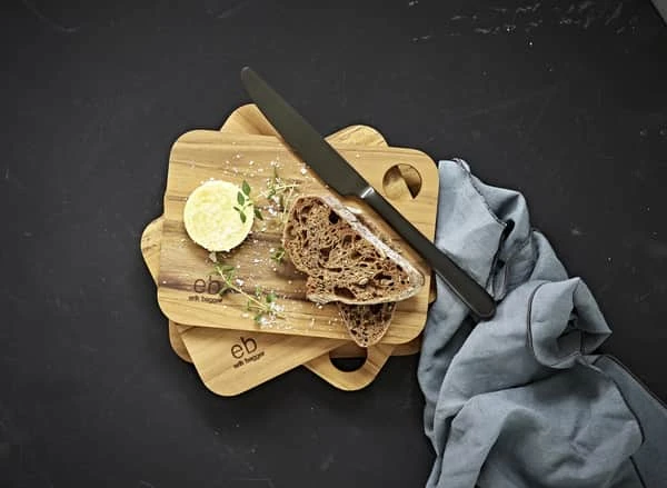 eb design team er blandt de første i Skandinavien til at designe og fremstille smørebrætter og skærebrætter i bæredygtig teak. Teaktræ har et smukt farvespil og spændende nuanceforskelle, derfor er ikke to skærebrætter ens og træet vil med tiden patinere og forandre karakter naturligt.