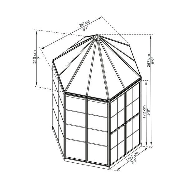 Få et stilfuldt drivhus i høj kvalitet med Oasis hexagonalt drivhus fra Canopia by Palram. Beskyt dine planter mod stærkt sollys og skadelige UV-stråler, og nyd den effektive vanddræning og luftstrøm med det indbyggede rensesystem og vindue.