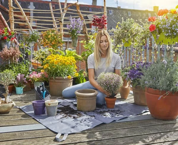 Plant eller omplant nemt dine blomster, når foråret melder sig, med plantemåtten fra Gardena. Den sørger for at jord og andet ikke havner på dit bord eller på dit altan- eller terrassegulv.