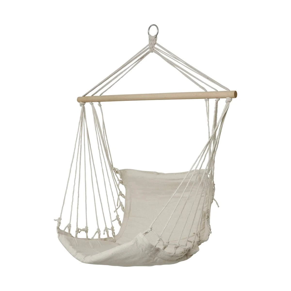 Med målene 90 x 50 cm giver hængestolen dig en mere oprejst stilling end i en hængekøje, så du kan nyde en kop kaffe eller læse en bog og samtidig sidde tilbagelænet og behageligt.