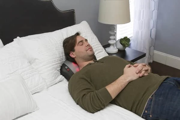 Øm i nakken? Bare læg dig ned på denne pude fra HoMedics og mærk massagen og følelsen af at blive mere og mere afslappet. Beroligende varme hjælper med at lette muskelspændinger.