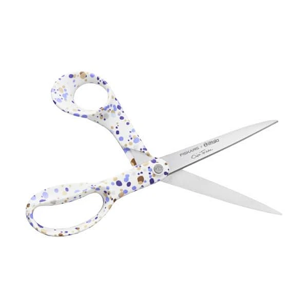 Den klassiske Fiskars saks har fået et designløft og har fået fine moviter i bedste Iittala stil. Det samme gælder for sysaksen, der kommer samlet i en fin æske.
