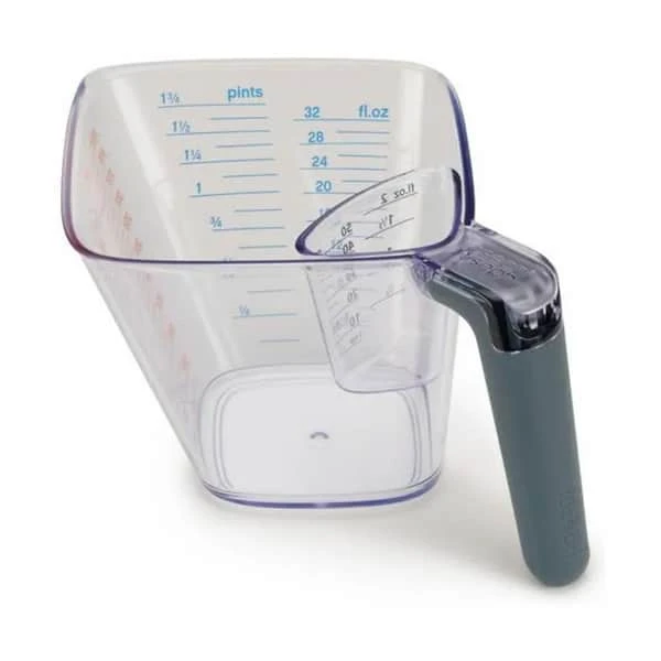Gør bagning og madlavning nemmere med denne smarte målekande fra Joseph Joseph, som både indeholder en stor og en lille målekande, som du kan bruge efter behov. Teksten er trykt således, at du kan læse den oppefra i stedet for fra siden, som gør det lidt mere bekvemt at måle af.