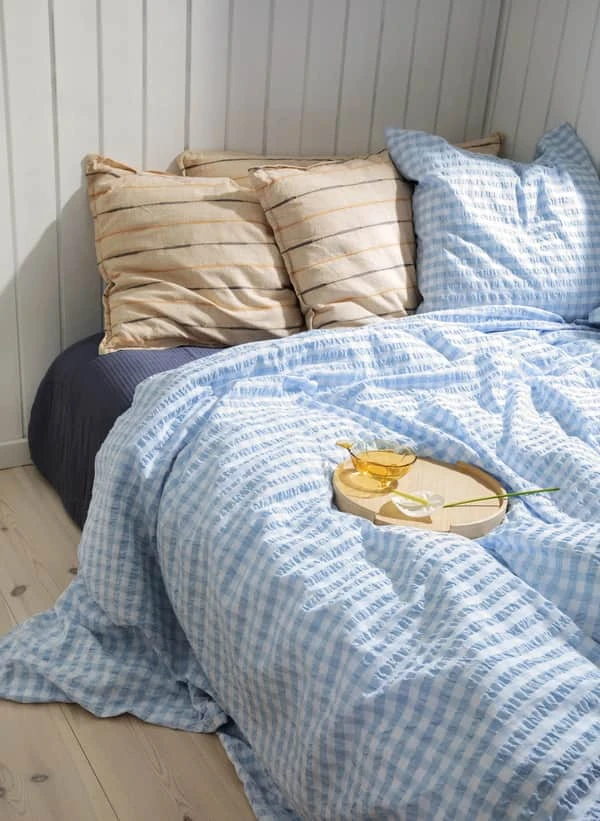 Aahh, læg dig godt til rette i dette bløde, ternede sengetøj fra Juna, som er krøllet på helt klassisk bæk og bølge-facon – en drøm for både hud og krop at putte sig i!