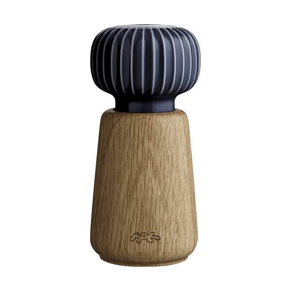 Du er sikret et elegant skandinavisk design til dit bord med Hammershøi-kværnen fra Kähler. Kværnen er udsmykket med en rillet indigoblå knop i porcelæn, som udover at være en fin detalje, også giver et godt greb, når du skal kværne. Du kan bruge kværnen til salt eller peber.