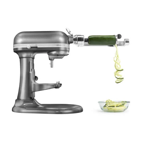 Der medfølger 6,9 liter rustfri skål med ergonomisk håndtag, samt en piskeris med elleve tråde. Derudover medfølger et fladt piskeris i pulverbelagt aluminium til tunge blandinger fx kagedej, glasur, rugbrødsdej og kartoffelmos (tåler opvaskemaskine i øverste kurv), og dejkrog i pulverbelagt aluminium til at blande og ælte gærdej (tåler opvaskemaskine i øverste kurv).