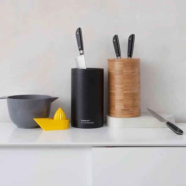 Endeavour er en dansk designet køkkenserie, skabt til de professionelle, men det behøver du ikke at være, for at få glade at Endeavours sans for kvalitet og design. Uanset om du er professionel eller ej, så er en Endeavour knivholder i bambus uden tvivl et æstetisk og anvendeligt køkkentilbehør, der er præget af Kirk og Maarbjergs respekt for design og kvalitet.