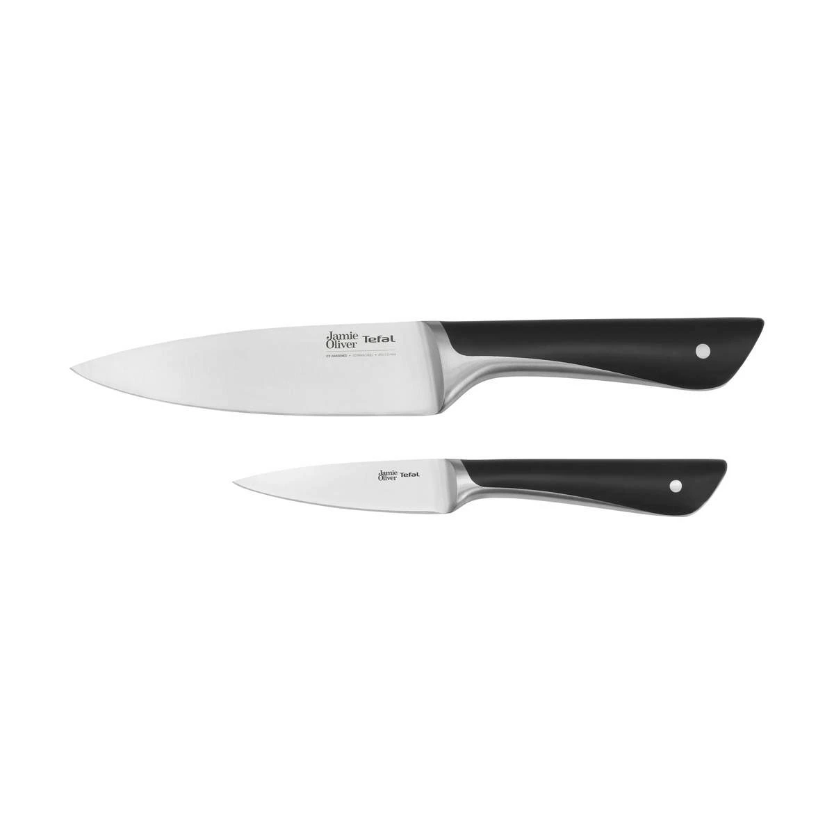 Knivene fra Jamie Oliver by Tefal er fremstillet i rustfrit stål, som er ishærdet, hvilket gør dem slidstærke og holdbare. Grebet er godt og sikkert, så du hurtig og nemt kan klargøre de friske råvarer.