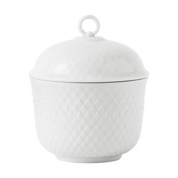 Sukkerskålens rhombe-relief er hentet fra Porcelænsfabrikken Danmarks store designarkiv og sås første gang på den populære, ildfaste Danild-serie i 1961.