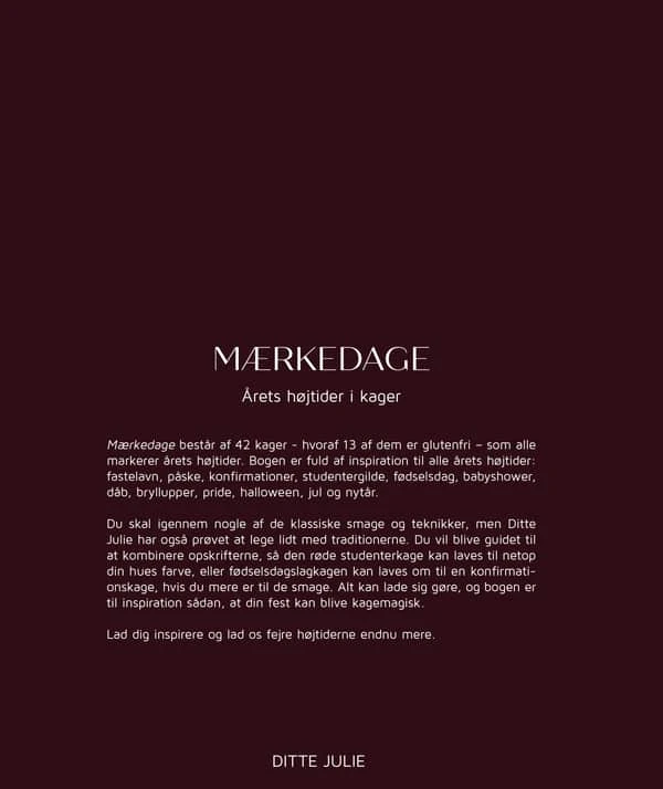 Gå i køkkenet med Ditte Julie og hendes kogebog “Mærkedage” – og bliv inspireret til at eksperimentere med nye spændende smage og putte et knivsspids magi i kagerne til årets fester og højtider!