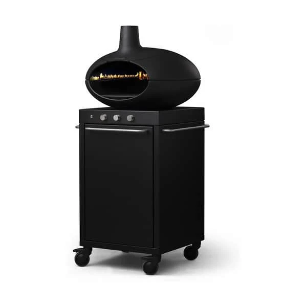 Forno Multi bidrager smukt til udemiljøet med sit sikre og stilrene design. Støbejernsovnen er nemlig fastmonteret på et enkelt og stilrent bord i sort, rustfrit stål. Under bordet er der praktisk opbevaring af gasflaske og/eller andet tilbehør, som skjules bag en diskret låge. På den måde fremstår ovn og bord homogent – både funktionelt og dekorativt. Bordet hviler på 4 robuste hjul, så Morsø Forno Multi let flyttes rundt på terrassen.