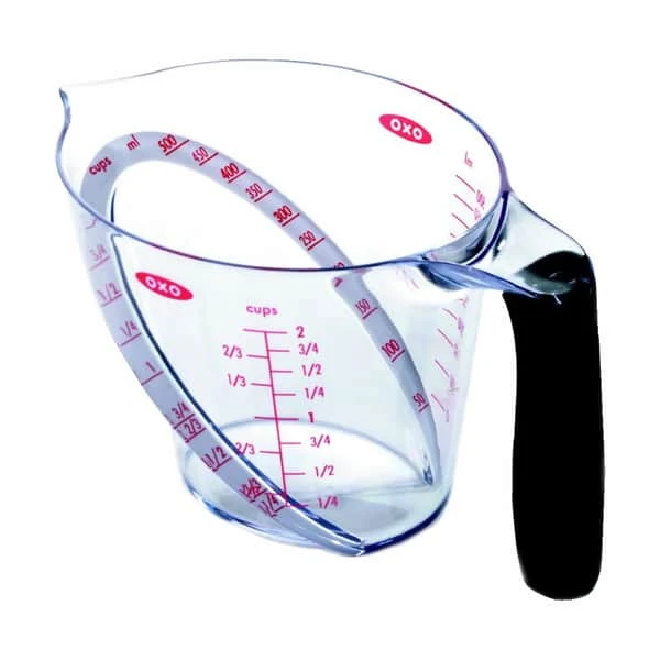 OXOs decilitermål måler op til 0,5 liter ad gangen, hvad end det er fast eller flydende indhold, og du kan nemt aflæse, mens du hælder. Non-slip håndtaget gør OXO decilitermålet behageligt at holde, også når det er tungt.