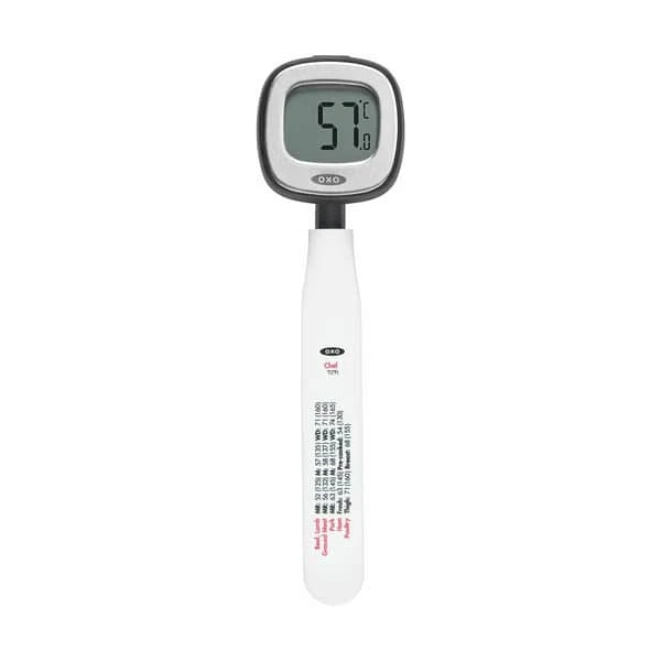 Termometeret fra Oxo kan måle både stegen som bages i ovnen, kyllingebrystet som steges på panden og hamburgeren eller bøffen på grillen.