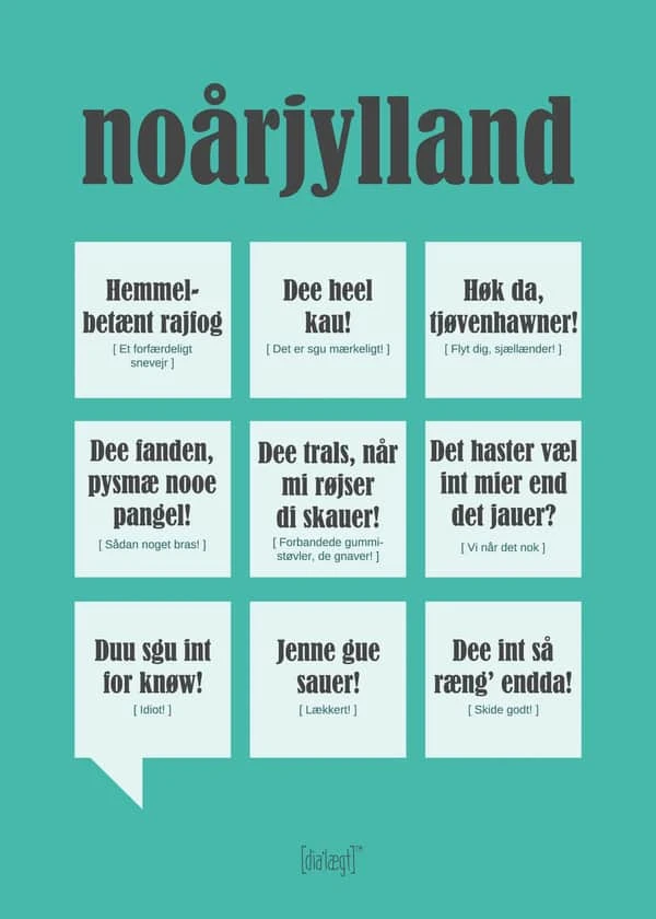 Dialægt har samlet de sjoveste citater fra Nordjylland til dig. Forelsket i dialekter, har Dialægt også kastet sig over Nordjylland med denne selvironiske plakat.