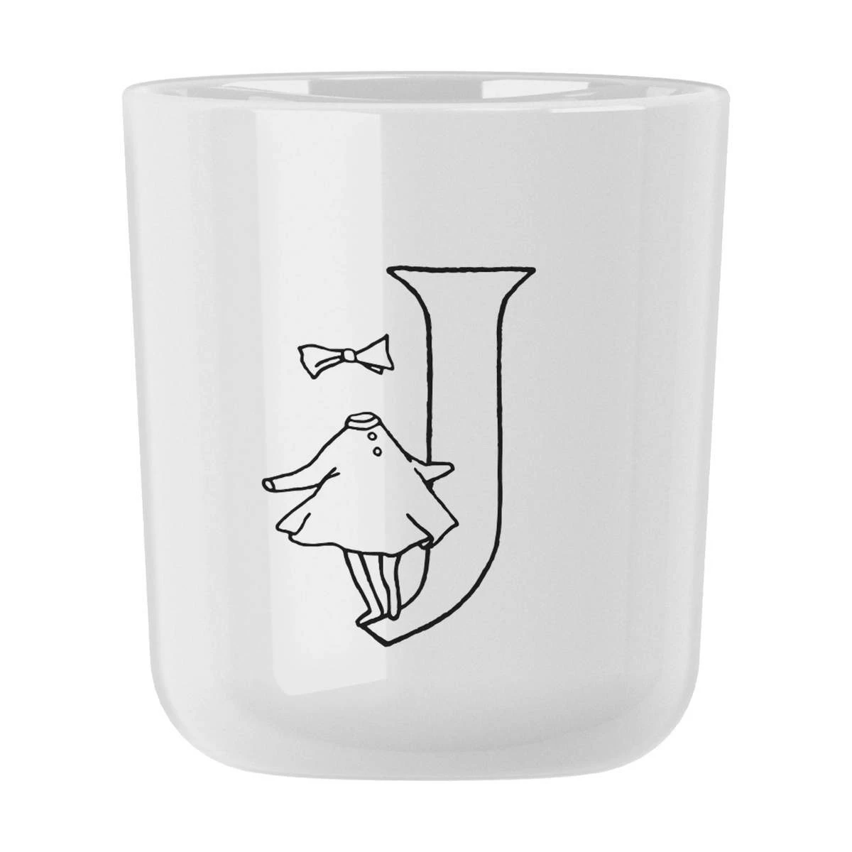 Moomin ABC koppen kommer i 26 versioner med hvert sit bogstav fra A til Z, samt en af de sjove figurer fra Mumiernes verden, afbilledet på siden af koppen.
