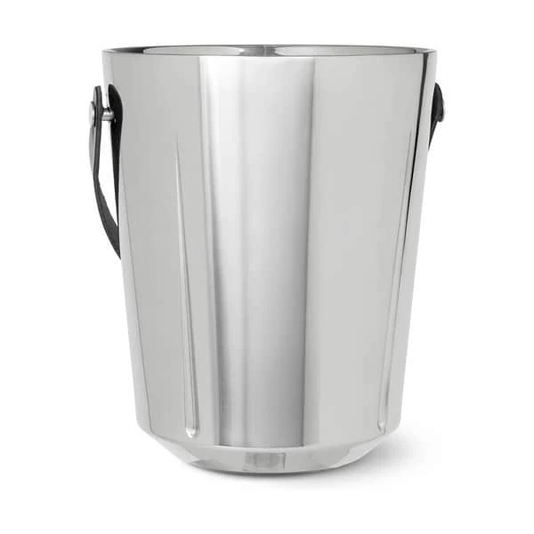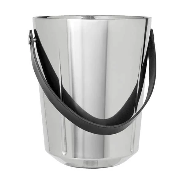 Champagnekøleren er lavet i rustfrit stål og har hank i læder. Den tåler ikke pudsemiddel og opvaskemaskine.