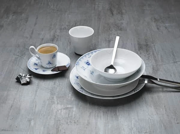 Porcelæn fra Royal Copenhagen har i mere end 230 år glædet mennesker i Danmark og verden over. Med stor respekt for de eksisterende metoder skaber Royal Copenhagen tidens look og mode. Blå Elements enkle og moderne udtryk gør stellet til et perfekt hverdagsstel med et strejf af luksus. Blå Elements serien fra Royal Copenhagen er en moderne kombination af flere Royal Copenhagen klassikere. Stellet har det blå karakteristiske mønster og riflerne, som vi kender det fra det klassiske musselmalede stel, kanten fra Halvblonden og takkerne fra Flora Danica.