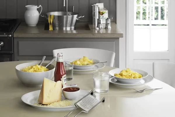 Porcelæn fra Royal Copenhagen har i mere end 230 år glædet mennesker i Danmark og verden over. Med stor respekt for de eksisterende metoder skaber Royal Copenhagen tidens look og mode. Hvid Riflets enkle og moderne udtryk gør stellet til et perfekt hverdagsstel med et strejf af luksus.