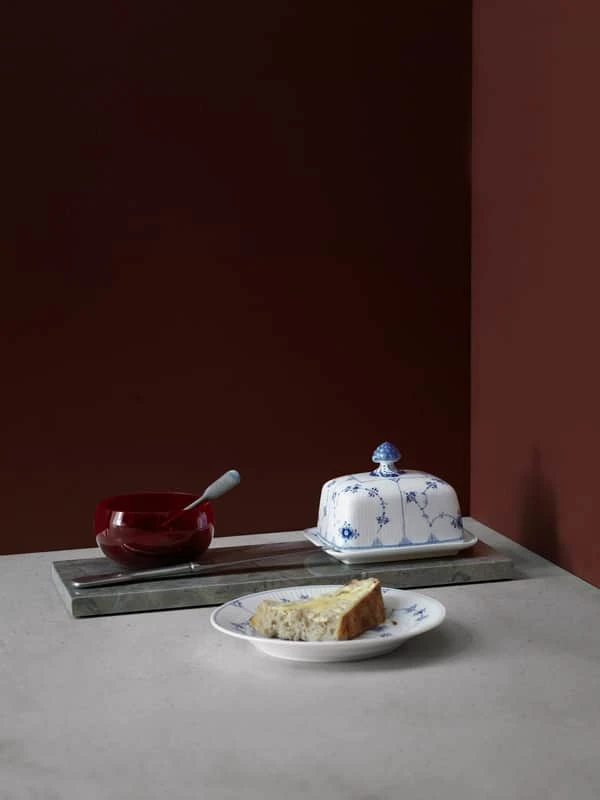 Med elegante rifler og det håndmalede klassiske musselmønster løfter smørskålen fra Royal Copenhagen dit morgenbord til et niveau af sofistikeret elegance. Smørskålen gør hverdagen en anelse smukkere, men er også perfekt til det store påske- eller julebord, når kun det fineste er godt nok.