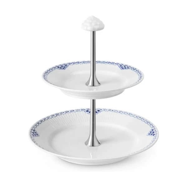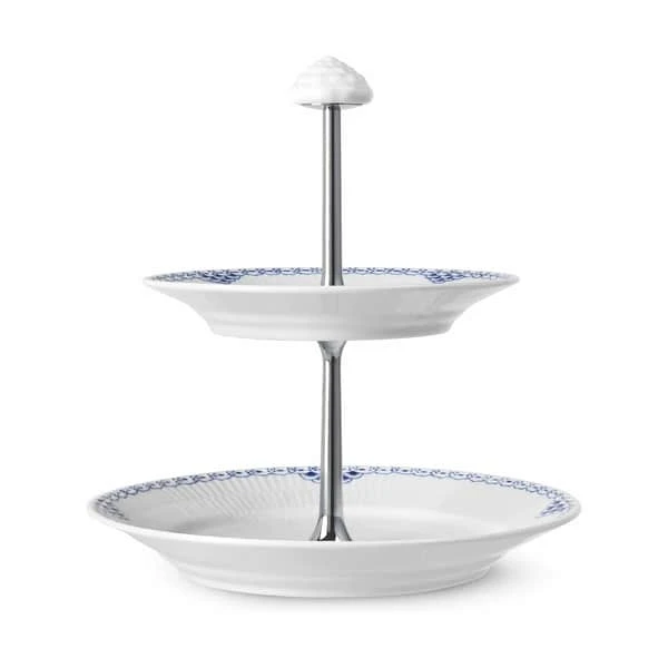 Om du vil servere hjemmebag, småkager, scones, petit fours eller frugt på Prinsesse kagestanderen fra Royal Copenhagen, bestemmer du helt selv – den er nemlig anvendelig til mange forskellige serveringer. Uanset er du sikret en smuk servering. Det flotte Prinsesse-mønster pryder de to tallerkener på henholdsvis 17 cm og 22 cm. Når kagestanderen ikke er i brug, kan den nemt skilles ad eller bruges som et smukt og dekorativt element i din indretning – f.eks. til smykker, hårpynt m.m.