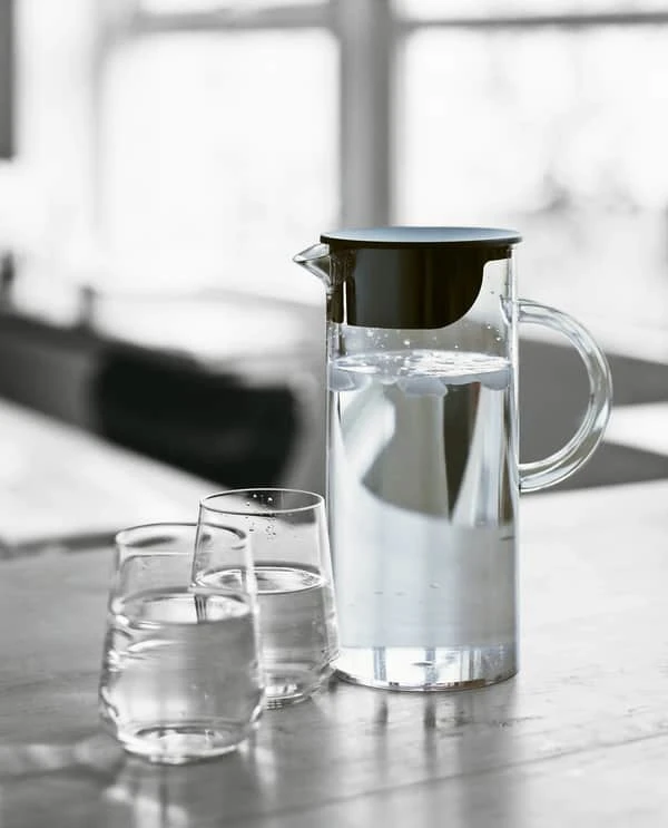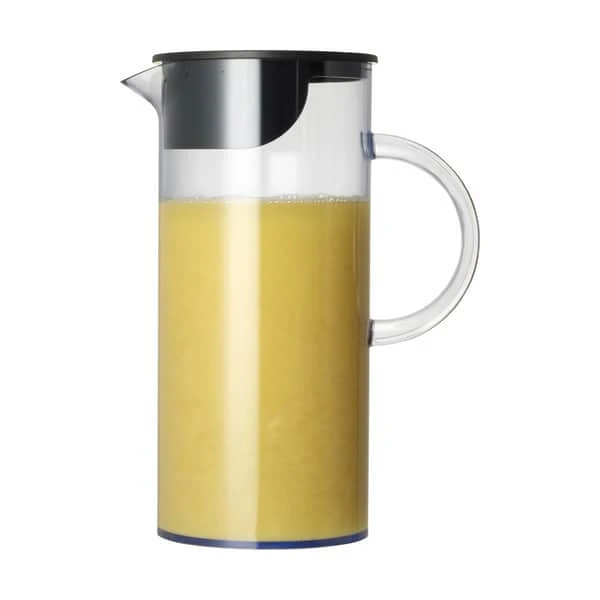 Server friskpresset juice til morgenbrunchen i den stilfulde EM77 kande fra Stelton. Nyder du iskolde forfriskninger holder det praktiske låg isterningerne i kanden, så du roligt kan hælde glasset helt op.