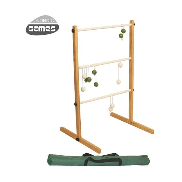 Et sjovt og populært spil for hele familien. Flot sæt i træ. Der fås point ved at kaste kuglerne og få dem til at vikle sig rundt om ribberne. Inkl. kuglesæt til 2 spillere.