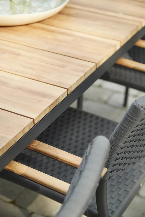 | Vedligeholdelse | Teaktræ behandles med teaktræsolie, wood procetor eller hvide sæbespåner, Aluminiumsstel rengøres med en fugtig klud opvredet i en mild sulfo-opblanding, |