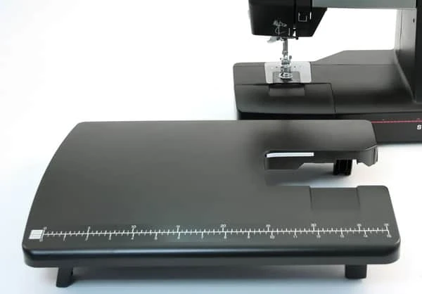 Forlængerbordet er et rigtig godt værktøj til at lave ekstra arbejdsplads ved symaskinen, når du sidder med større syprojekter som for eksempel gardiner, tæpper og bukser. Forlængerbordet har foldbare ben, der kan justeres, og den indtegnede lineal måler fra 0-38 cm og hjælper dig med at holde styr på stoffet. Denne model passer til alle sorte Toyota symaskiner, undtagen OEKAKI50.
