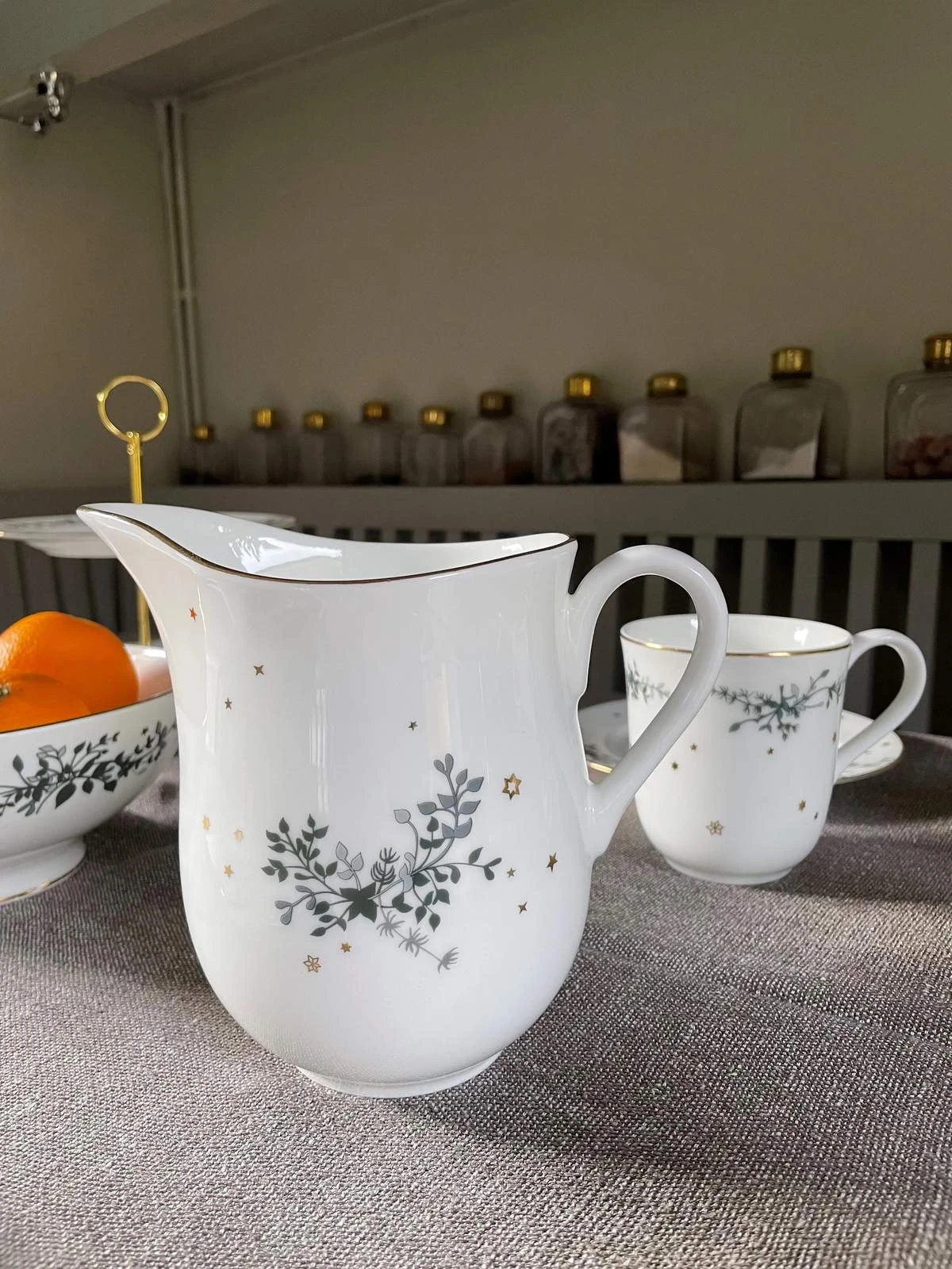 Server vand eller saft i den elegante Vinterstjerne kande fra Jette Frölich Design. Kanden passer perfekt til julemiddagen, og især sammen med porcelænsstellet fra Vinterstjerne kollektionen.