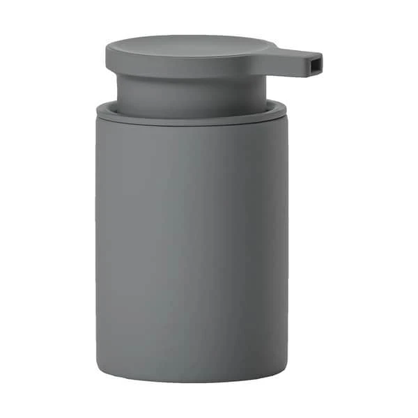 Serien af badeværelsestilbehør Karma fra Zone består af sæbedispenser, tandbørstekrus, toiletbørste og pedalspand. Alle elementer har et enkelt og stilrent design, som skaber ro i badeværelsesindretningen. Det rå stentøj har fået en soft touch overflade, der giver hver item et mat look – og gør det behageligt at røre ved.